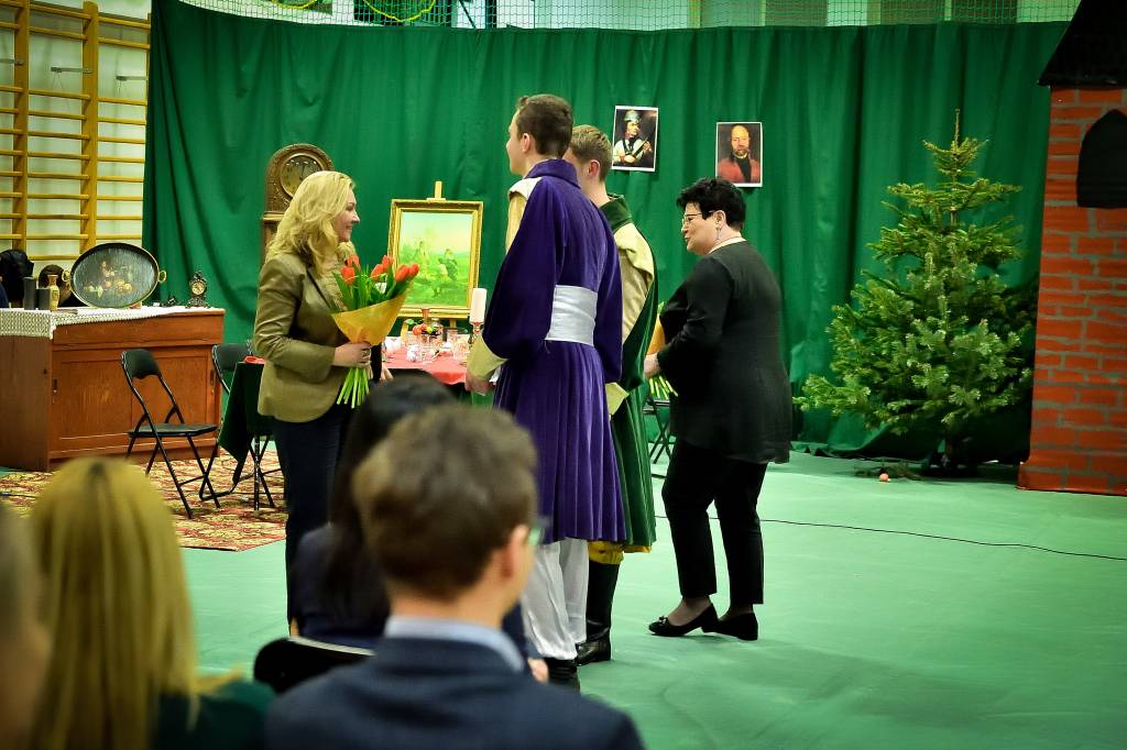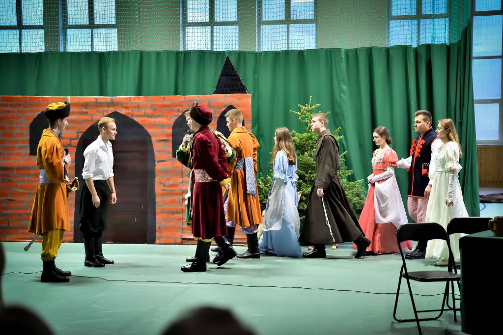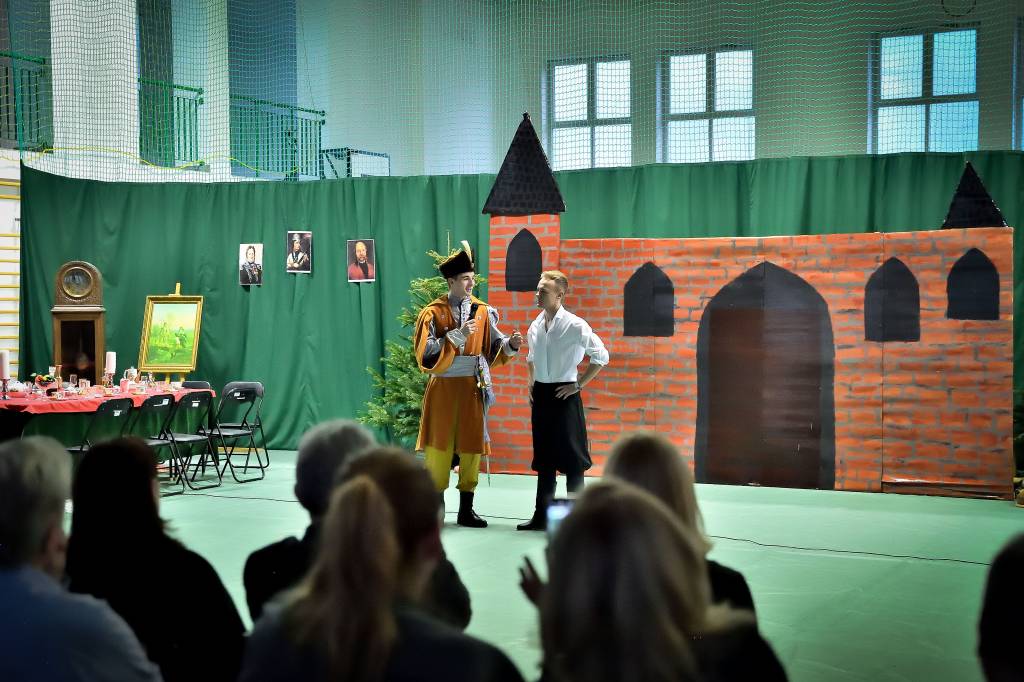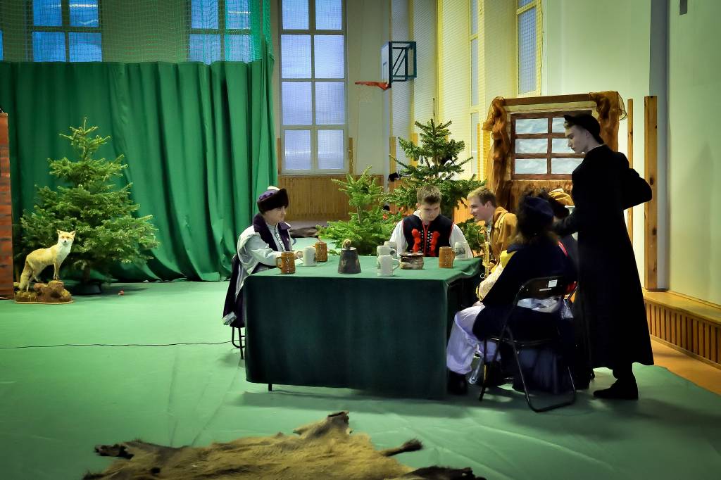 3 marca 2020r. w Zespole Szkół Drogowo-Geodezyjnych i Licealnych im. A. Witkowskiego w Jarosławiu odbyło się przedstawienie pt. „Pan Tadeusz” przygotowane przez uczniów klas 2l i 2m. Sala była wypełniona przez zaproszonych rodziców, grono pedagogiczne oraz uczniów szkoły. Swoją obecnością zaszczyciła nas także Pani Marta Kurpiel – Naczelnik Wydziału Edukacji i Spraw Społecznych. Spektakl przeniósł nas do świata bohaterów XIX-wiecznego utworu, a sceny walki, huczne biesiady czy taniec polonez nadały spektaklowi specyficznego charakteru. Uczniowie bardzo dobrze wcielili się w powierzone im role, a całości dopełniała odpowiednio przygotowana scenografia, stroje, muzyka i oświetlenie, dopracowane pod czujnym okiem Pani profesor Anny Wasiuty. Po występie publiczność długo oklaskiwała naszych aktorów, co na pewno wynagrodziło im cały wysiłek włożony w ukazanie klasycznej historii w tak niecodzienny sposób. Zdecydowanie przybliżyli wszystkim zgromadzonym historię bohaterów naszej epopei narodowej, ukazując jak ważną rolę odgrywa pamięć o naszych korzeniach.