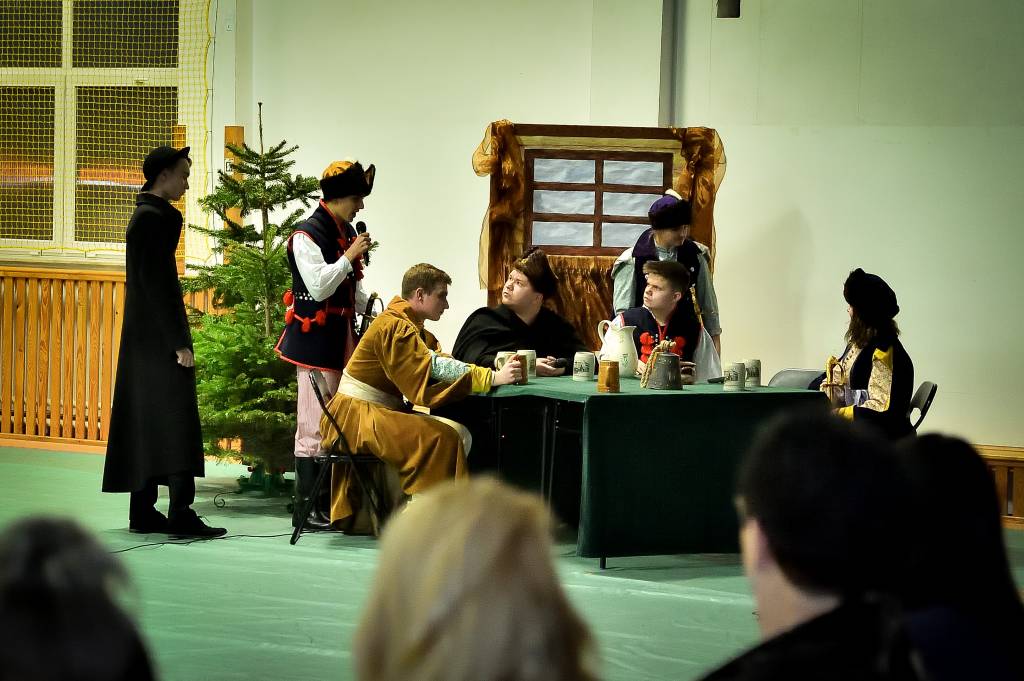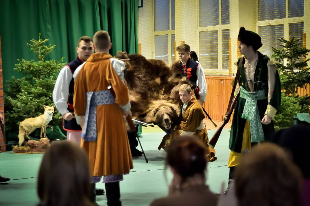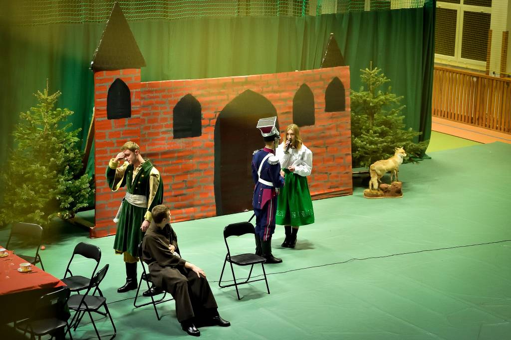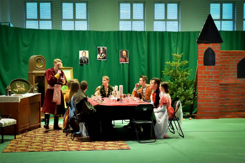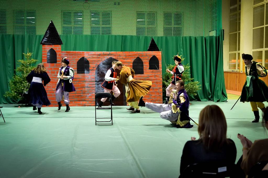 3 marca 2020r. w Zespole Szkół Drogowo-Geodezyjnych i Licealnych im. A. Witkowskiego w Jarosławiu odbyło się przedstawienie pt. „Pan Tadeusz” przygotowane przez uczniów klas 2l i 2m. Sala była wypełniona przez zaproszonych rodziców, grono pedagogiczne oraz uczniów szkoły. Swoją obecnością zaszczyciła nas także Pani Marta Kurpiel – Naczelnik Wydziału Edukacji i Spraw Społecznych. Spektakl przeniósł nas do świata bohaterów XIX-wiecznego utworu, a sceny walki, huczne biesiady czy taniec polonez nadały spektaklowi specyficznego charakteru. Uczniowie bardzo dobrze wcielili się w powierzone im role, a całości dopełniała odpowiednio przygotowana scenografia, stroje, muzyka i oświetlenie, dopracowane pod czujnym okiem Pani profesor Anny Wasiuty. Po występie publiczność długo oklaskiwała naszych aktorów, co na pewno wynagrodziło im cały wysiłek włożony w ukazanie klasycznej historii w tak niecodzienny sposób. Zdecydowanie przybliżyli wszystkim zgromadzonym historię bohaterów naszej epopei narodowej, ukazując jak ważną rolę odgrywa pamięć o naszych korzeniach.