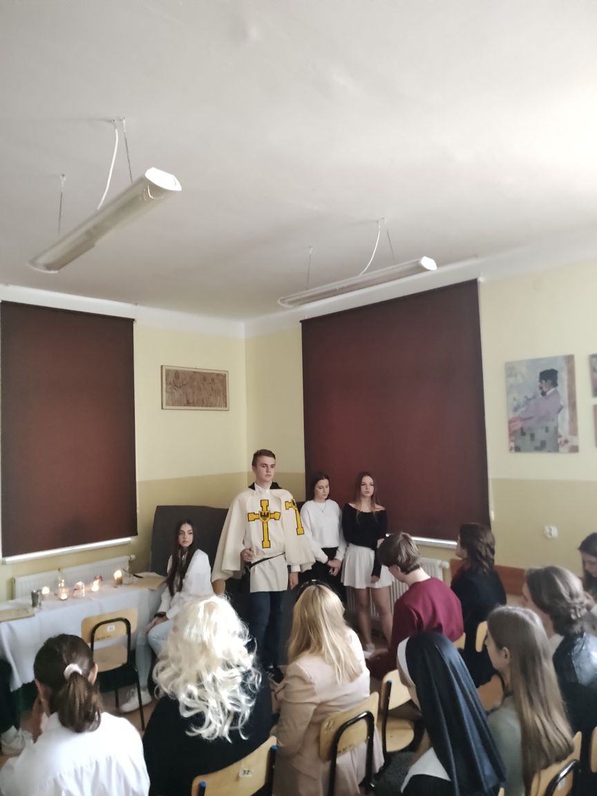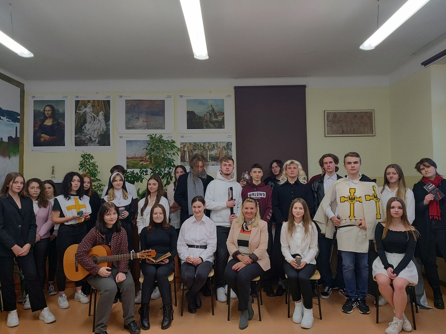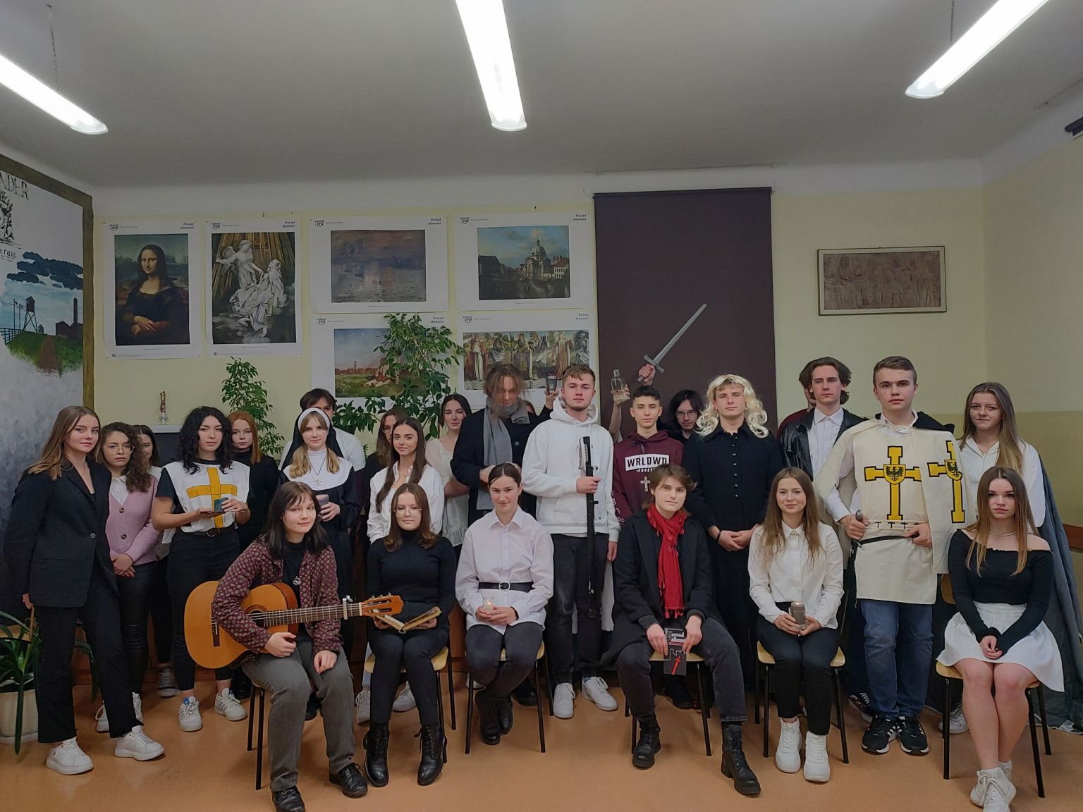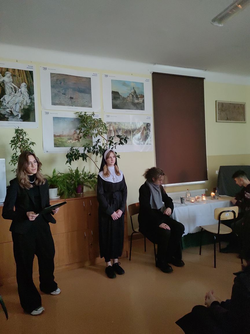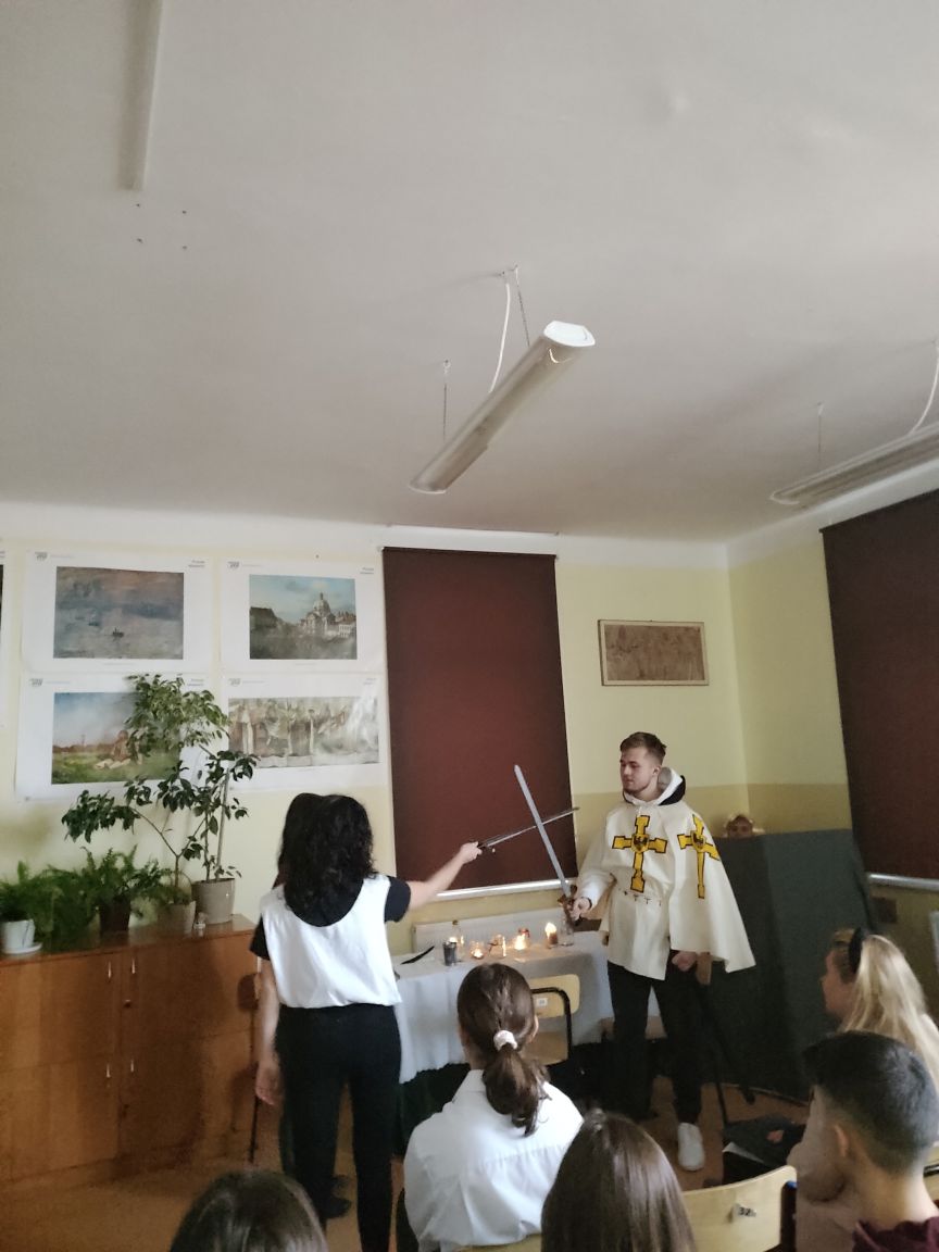 inscenizacjaSpełnione wyroki, Ty masz być mistrzem… Te słowa wybrzmiały w miniony poniedziałek w sali 35 podczas inscenizacji fragmentów „Konrada Wallenroda” przygotowanej przez uczniów kl.3D w ramach zajęć z wychowawcą. Przyszli architekci i biolodzy, obcując ze sztuką ćwiczyli dykcję, gest, ruch sceniczny, a wszystko to przy odrobinie uśmiechu i dobrej zabawy… Gościem specjalnym była Pani Dyrektor Renata Tomaka – Pasternak.