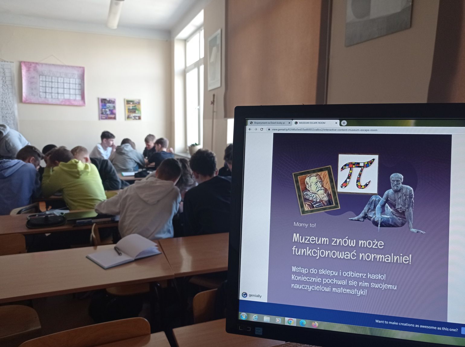 W ostatnich dniach w naszej szkole świętowaliśmy Dzień Matematyki oraz Dzień Liczby Pi. Z tej okazji uczniowie klas 1M, 1P, 2B, 2H, 3D, 4E, 4P i 3L wzięli udział w interaktywnych zabawach, zwiedzali kolejne sale wirtualnego Muzeum Liczby Pi, poznając wiele ciekawostek na temat Ludolfiny. Wykonywali również ciekawe eksperymenty.