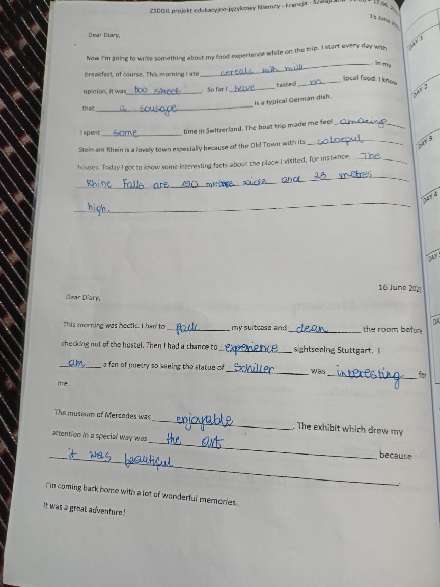 Każdy dzień kończył się podsumowaniem zadań terenowych i pracą w zeszytach edukacyjnych, pełnych tekstów o historii zwiedzanych miast, kulturze i obyczajowości tamtejszej ludności czy kulinarnych osobliwościach regionu. Założenia wyjazdu edukacyjno – językowego jak i cały program były ciekawe, sprawnie przebiegała podróż, ale to co dobre zawsze kiedyś się kończy i pozostają wspomnienia…