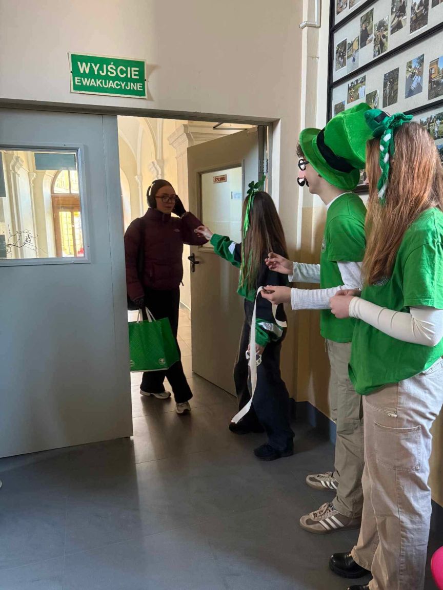 W ramach konkursu klasowego na najlepszy strój inspirowany kulturą Irlandii klasy wykazały się ogromną kreatywnością – najbardziej oryginalne stylizacje zostały nagrodzone specjalnym wyróżnieniem. Nie zabrakło również emocji podczas konkursu językowego „Leprechaun’s Gold”, w którym uczestnicy rozwiązywali zagadki tematyczne w języku angielskim i szukali „złota”. Na zwycięzców czekały nagrody-niespodzianki!