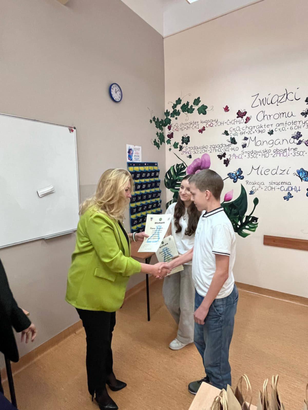 3 kwietnia 2025 r. w ZSDGIL uczniowie klas VIII szkół podstawowych powiatu jarosławskiego wzięli udział w IV edycji konkursu Biochemikuj pod patronatem Starostwa Powiatowego. Konkurs przebiegł dwuetapowo: uczniowie rozwiązywali zadania testowe, a następnie w części praktycznej wykonywali doświadczenia z biologii i chemii. Najlepsi okazali się uczniowie SP w Cieszacinie Wielkim. Drugie miejsce przypadło SP 10 w Jarosławiu, a III zdobyła SP 7, również z Jarosławia. Wyróżnienie należy się również SP nr 6, 4, i 1 z naszego miasta. Gratulacje kierujemy do wszystkich opiekunów młodzieży. Sponsorem nagród i patronem konkursu było Starostwo Powiatowe, Lasy Państwowe Nadleśnictwo Jarosław oraz dyrektor naszej szkoły. Z ramienia szkoły ZSDGiL konkurs przygotowały: Sylwia Zielińska, Irena Jarosz, Dorota Kamińska i Joanna Hawryłko.