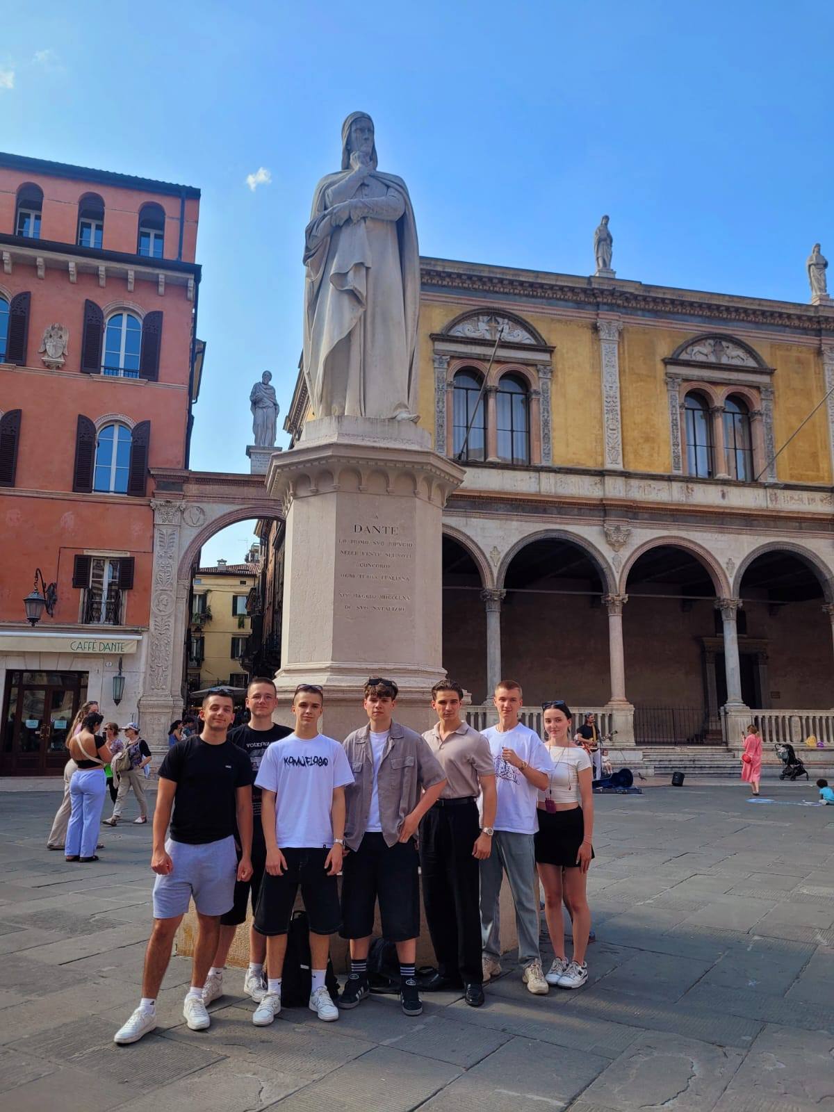 Następnie przejechaliśmy do Werony, miasta Romea i Julii, z pięknym amfiteatrem – areną, pomnikami m.in. Dante Alighieri, miastem klimatycznych koncertów. Było pięknie.