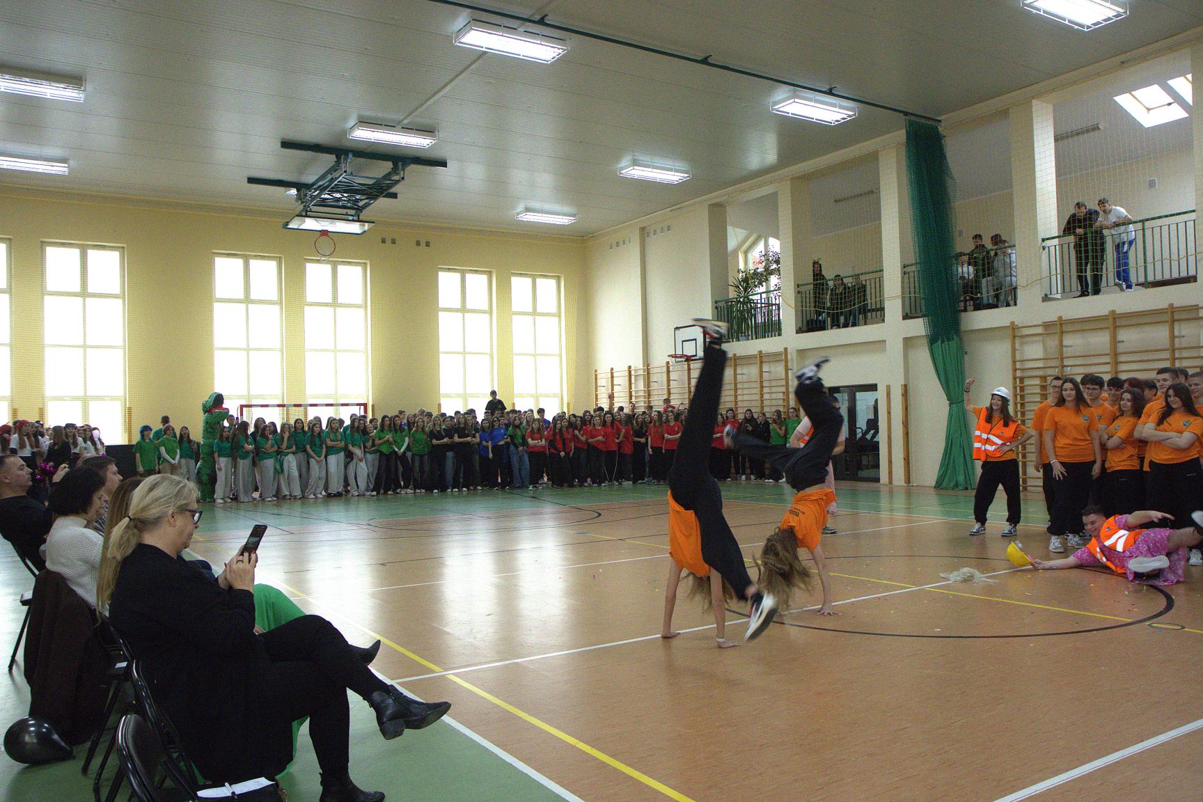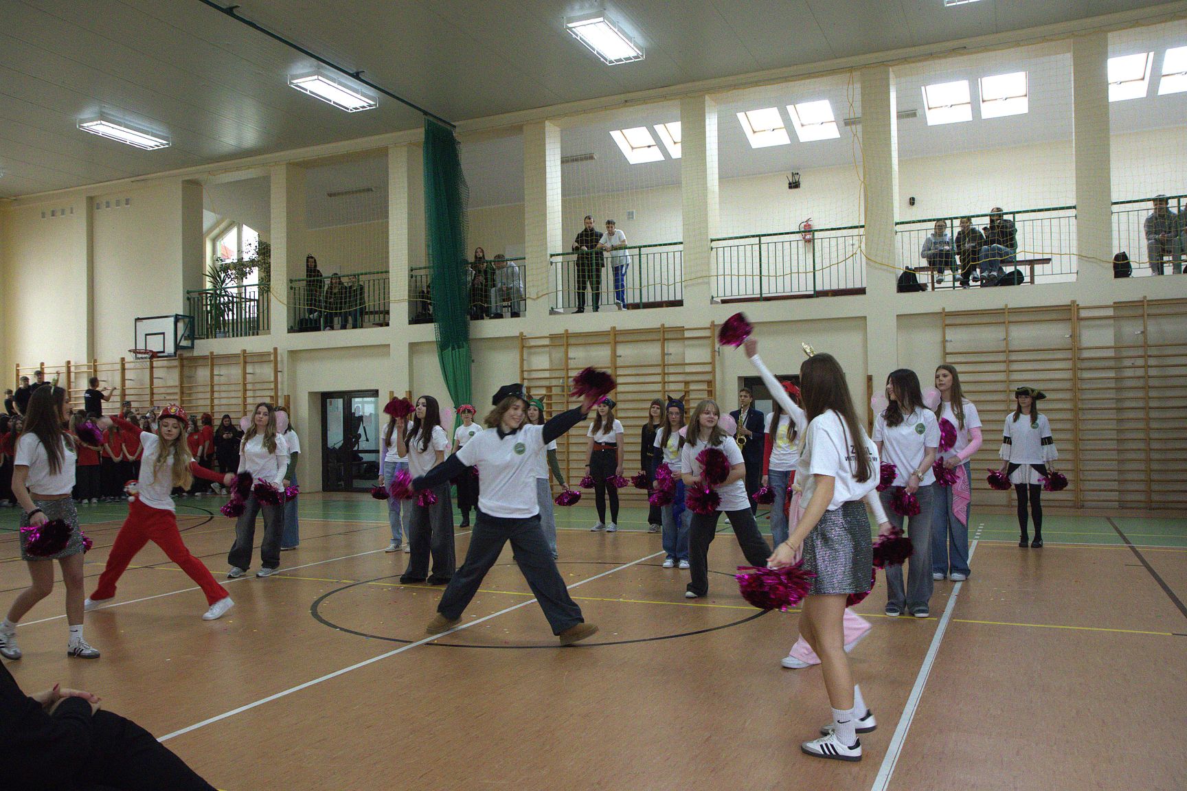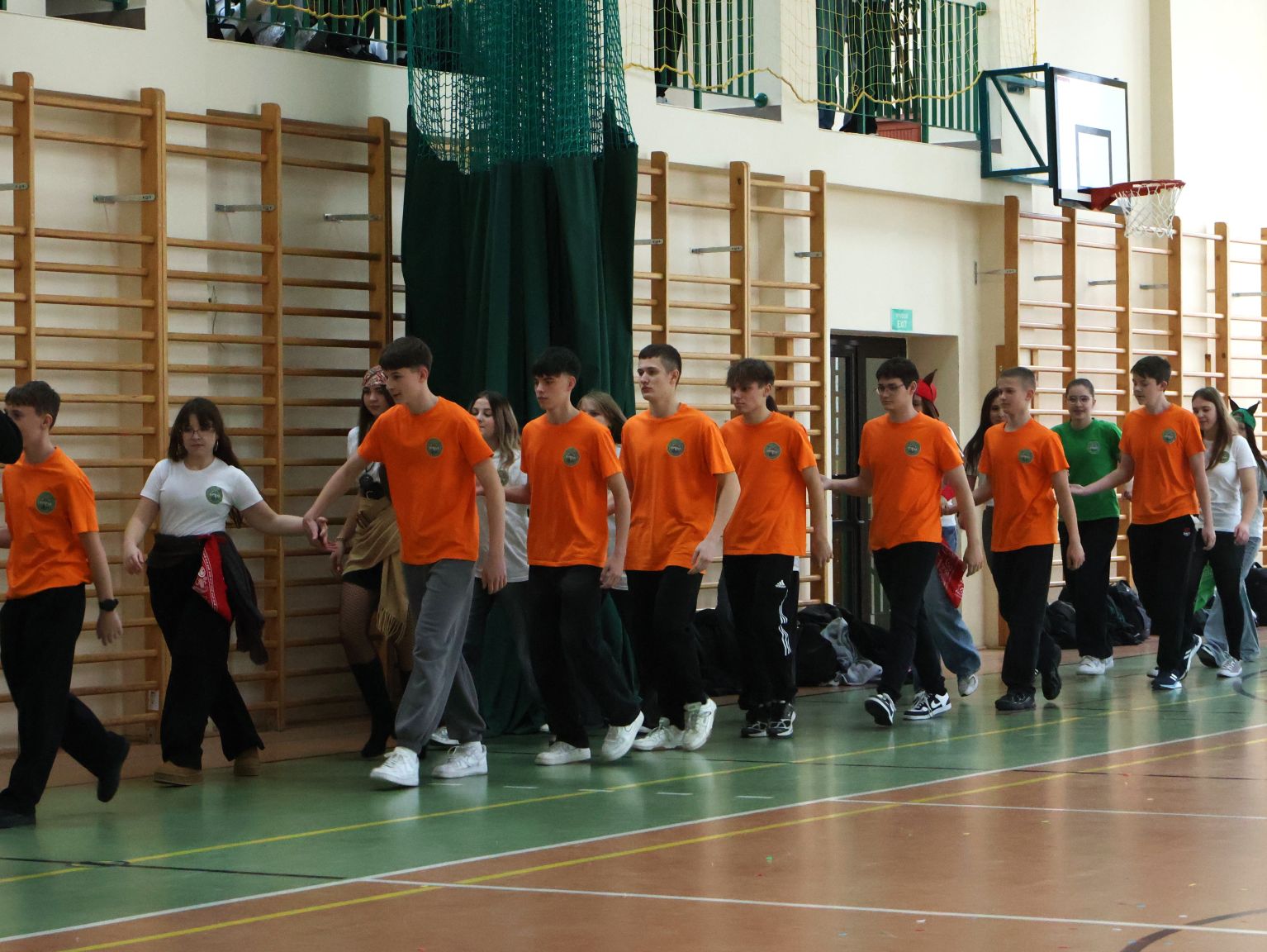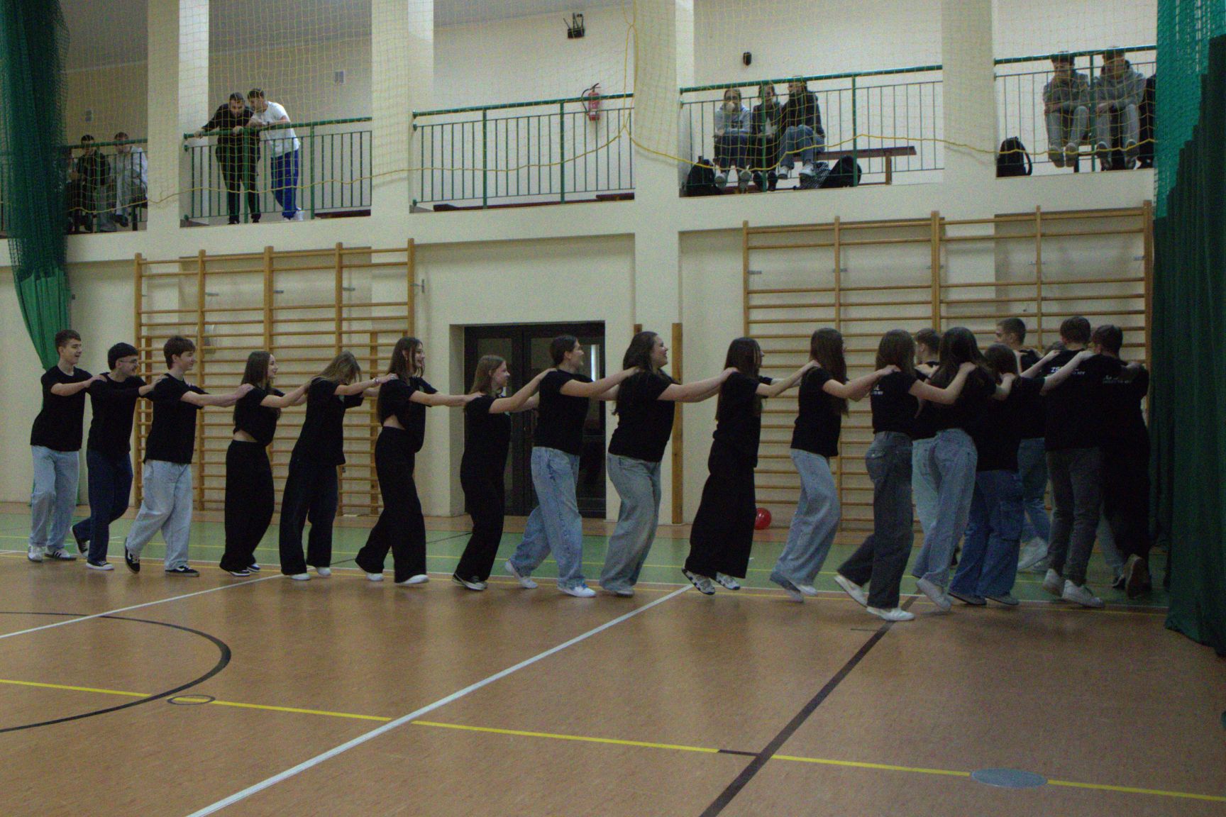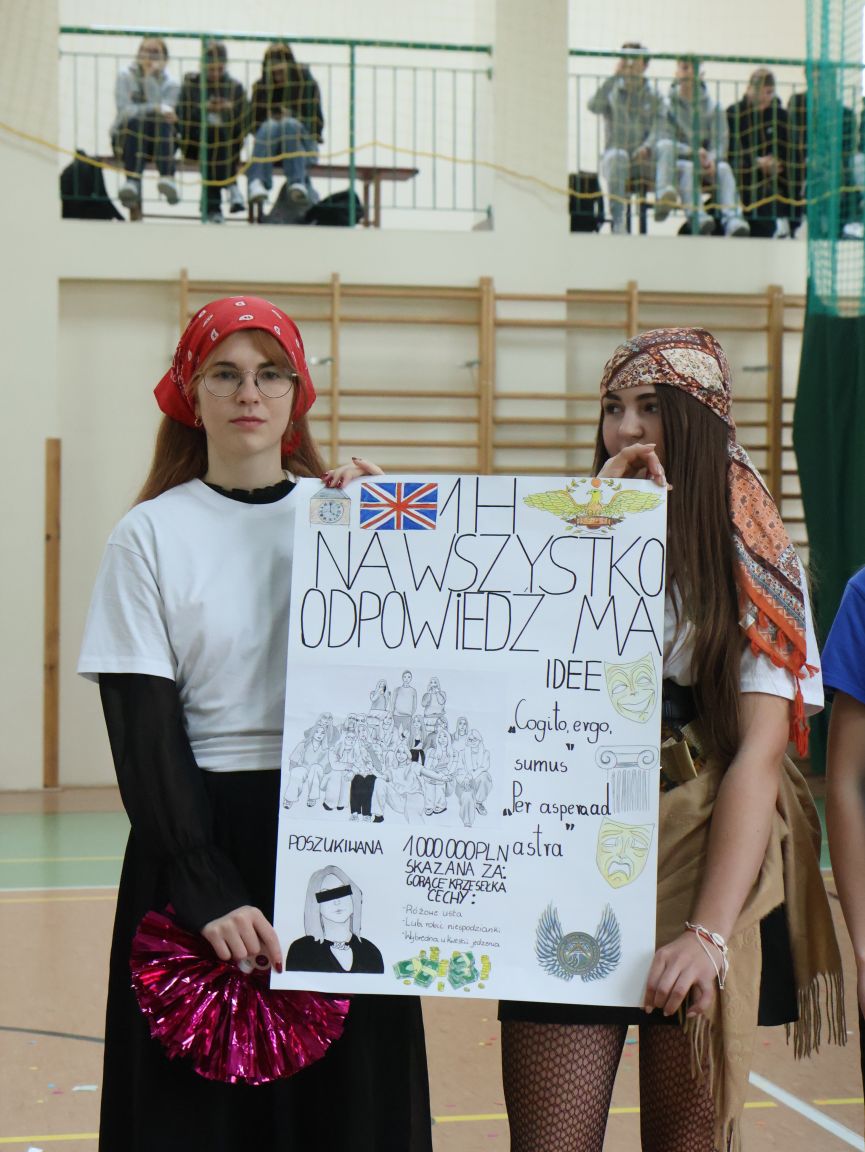 Andrzejkowy turniej klas pierwszych – pokazy taneczne, piękne plakaty, rewia sobowtórów wychowawców, a na koniec nie mogło zabraknąć wspólnych tańców. Wspaniała zabawa połączona z rywalizacją. Świetna integracja.