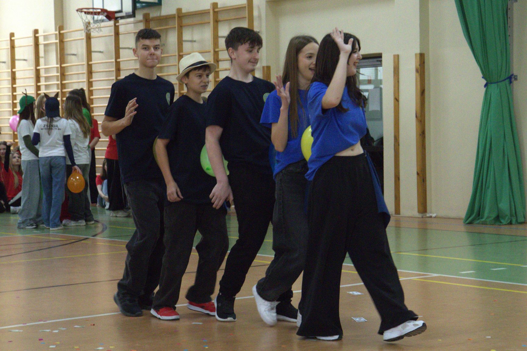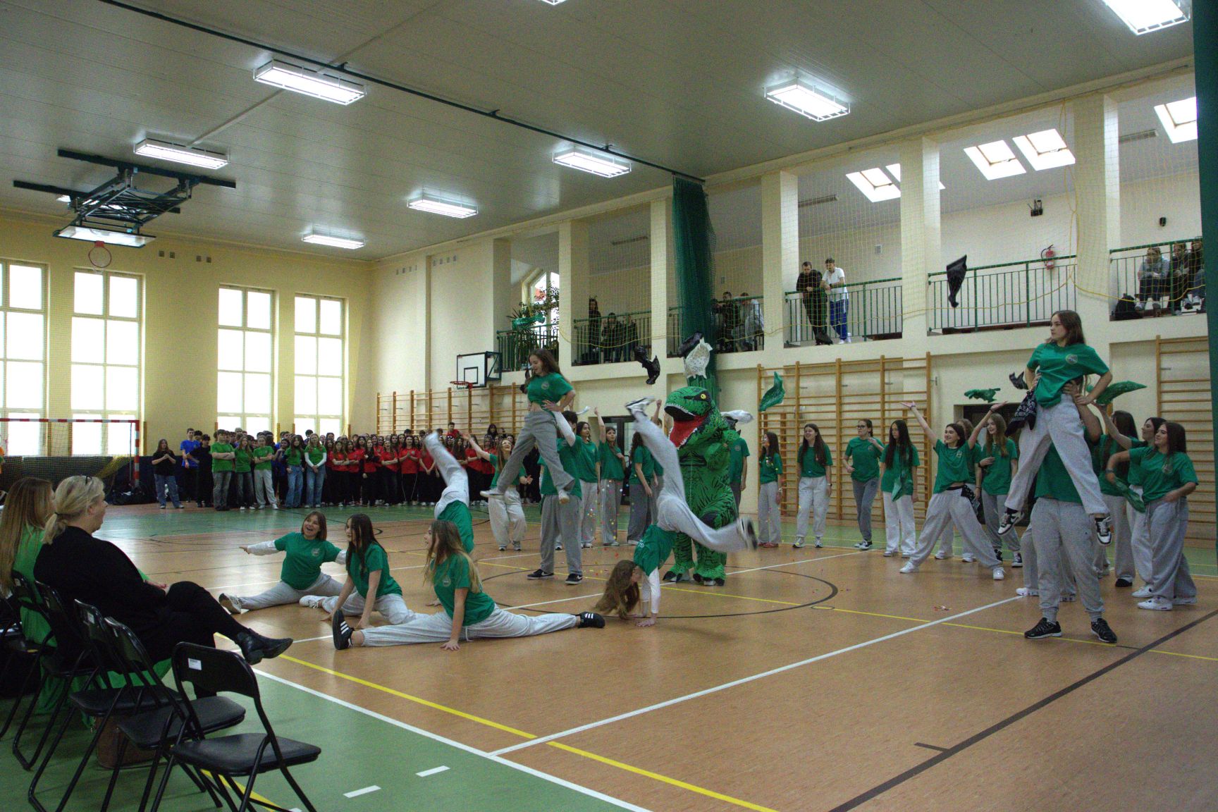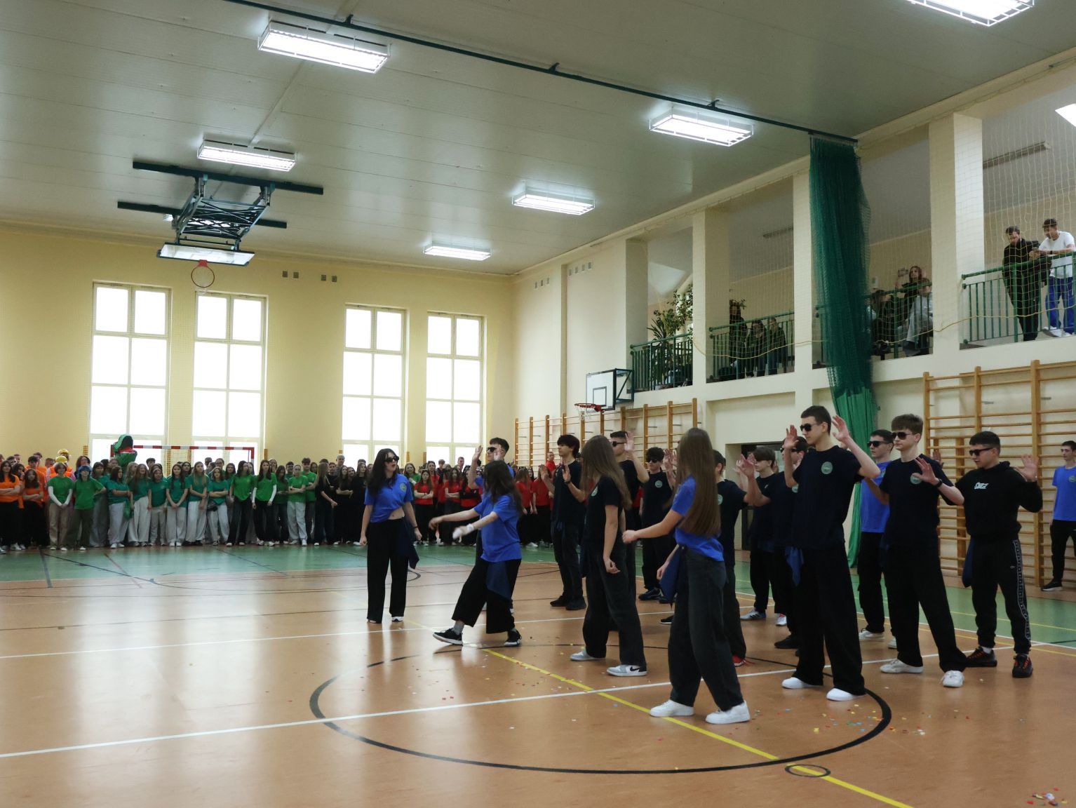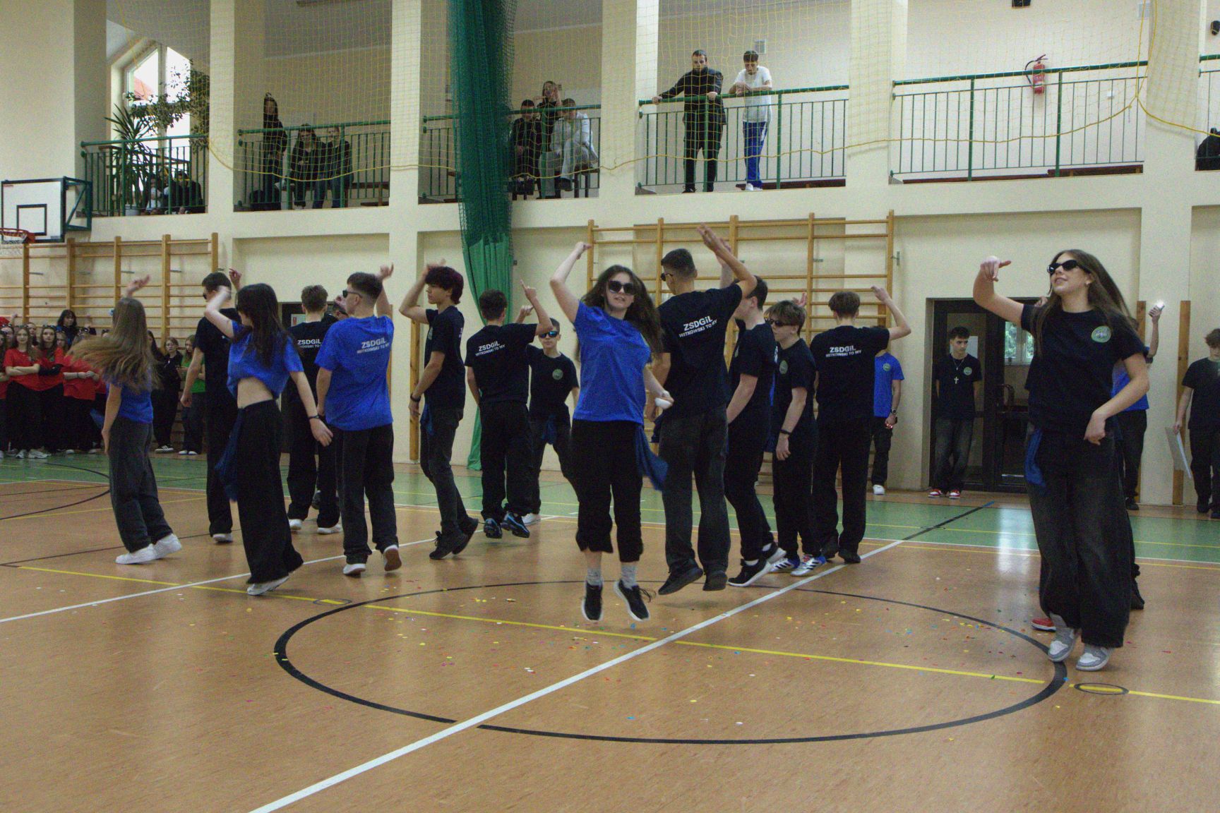 Andrzejkowy turniej klas pierwszych – pokazy taneczne, piękne plakaty, rewia sobowtórów wychowawców, a na koniec nie mogło zabraknąć wspólnych tańców. Wspaniała zabawa połączona z rywalizacją. Świetna integracja.