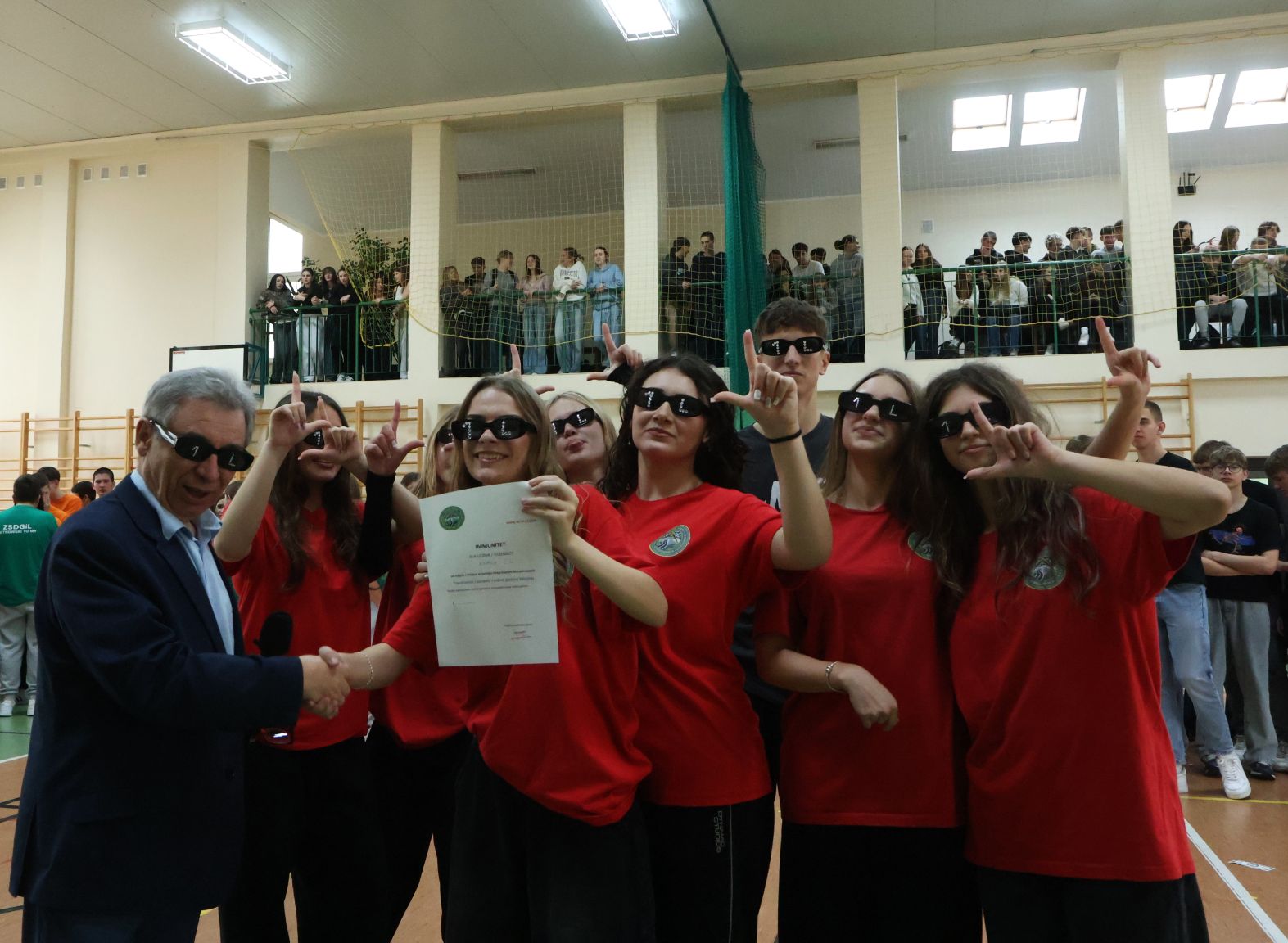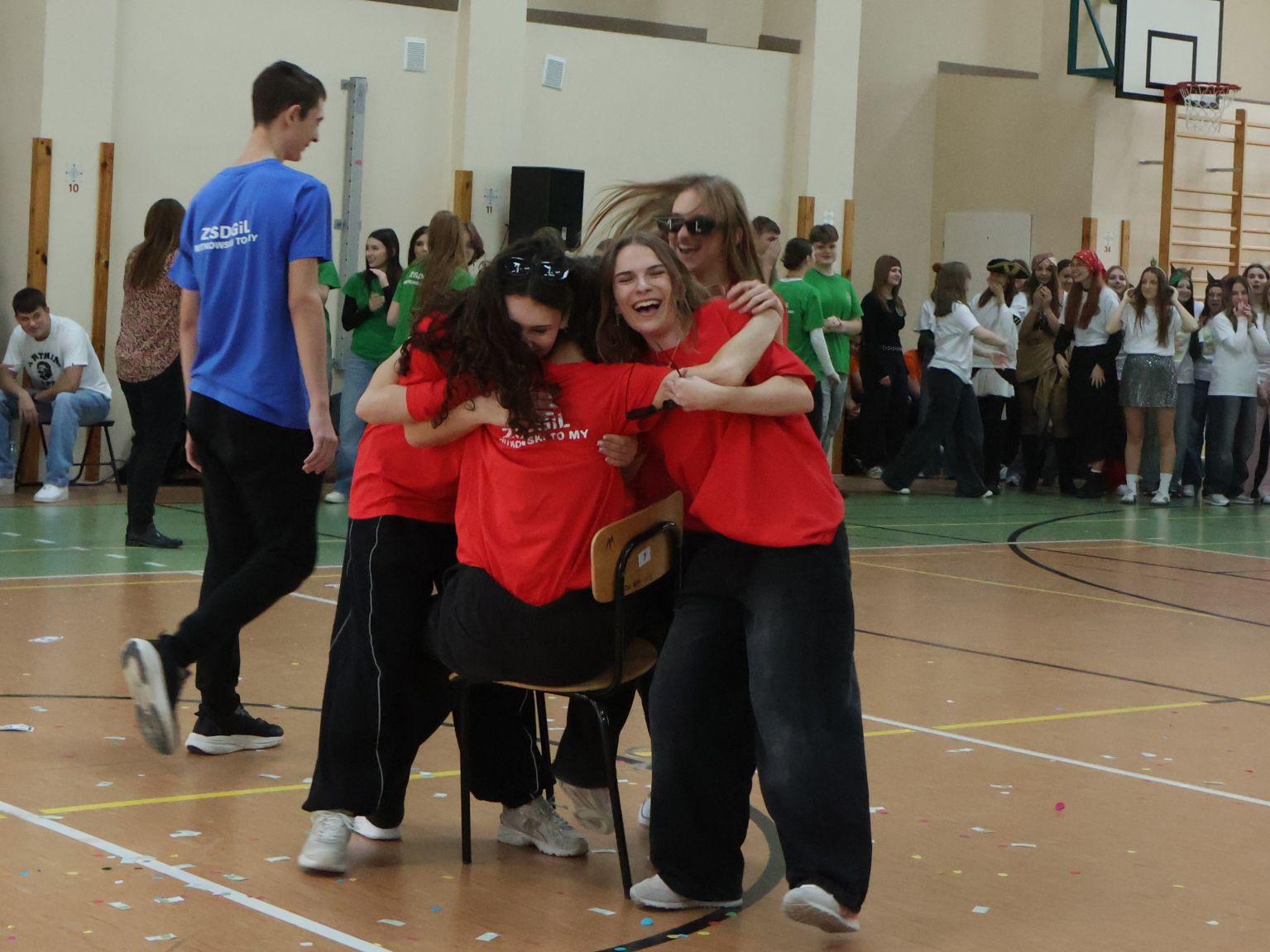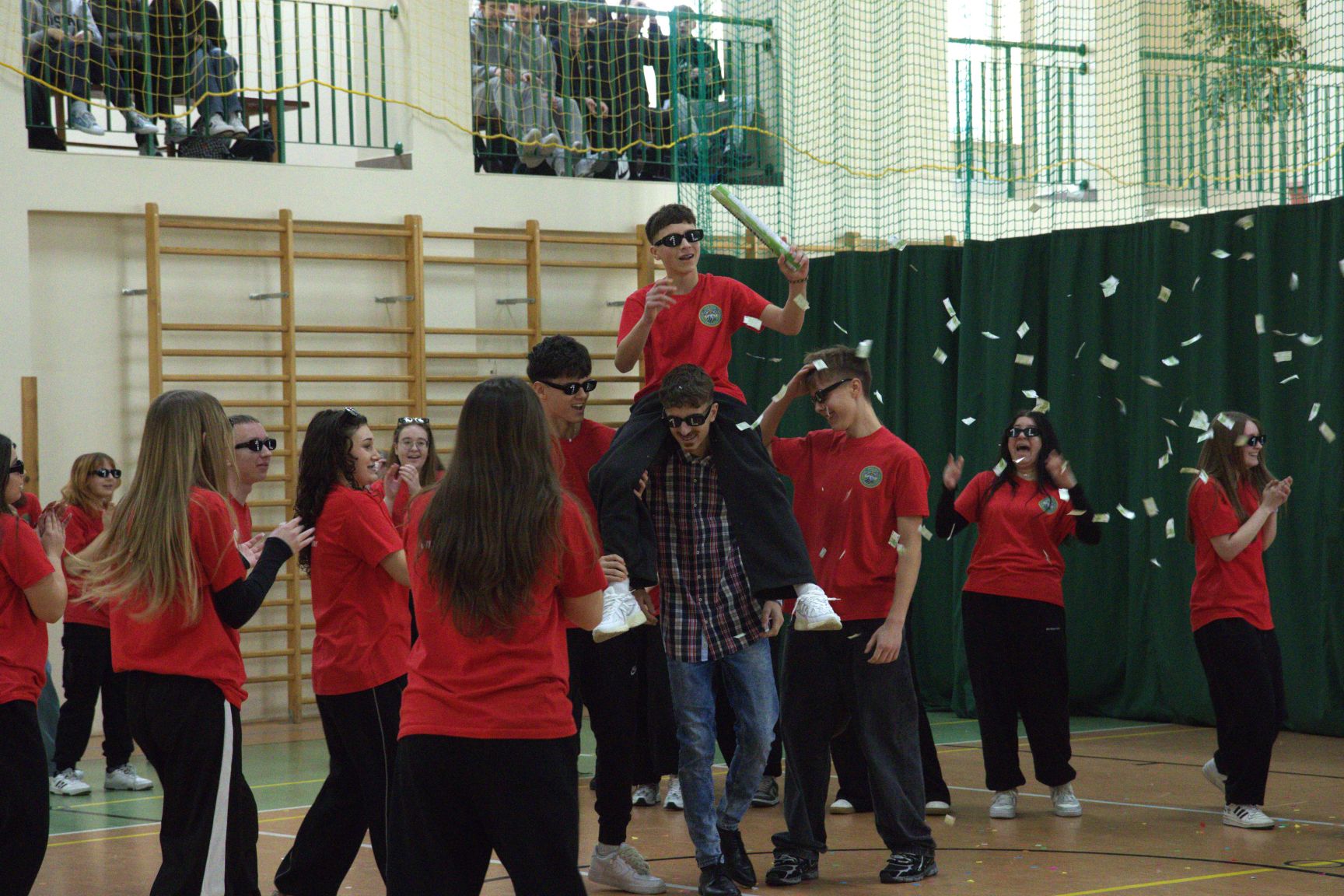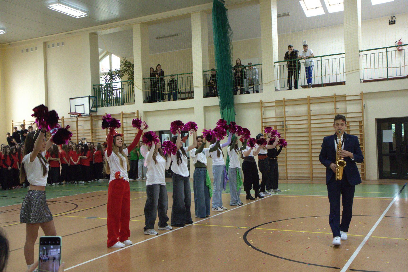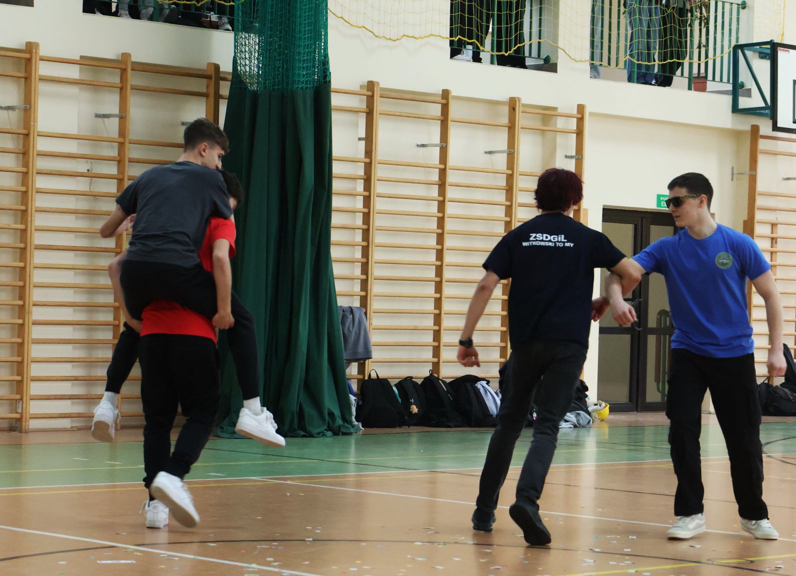 Andrzejkowy turniej klas pierwszych – pokazy taneczne, piękne plakaty, rewia sobowtórów wychowawców, a na koniec nie mogło zabraknąć wspólnych tańców. Wspaniała zabawa połączona z rywalizacją. Świetna integracja.