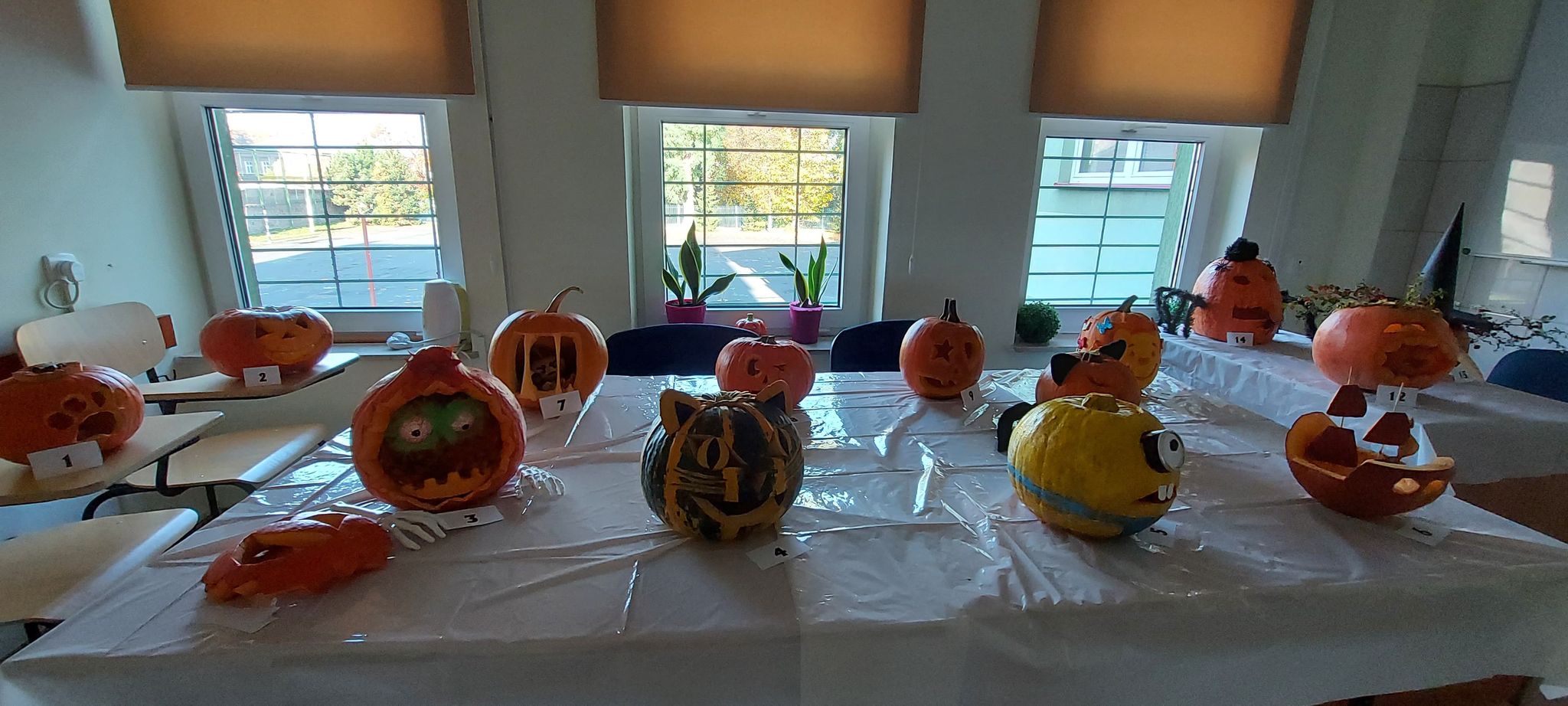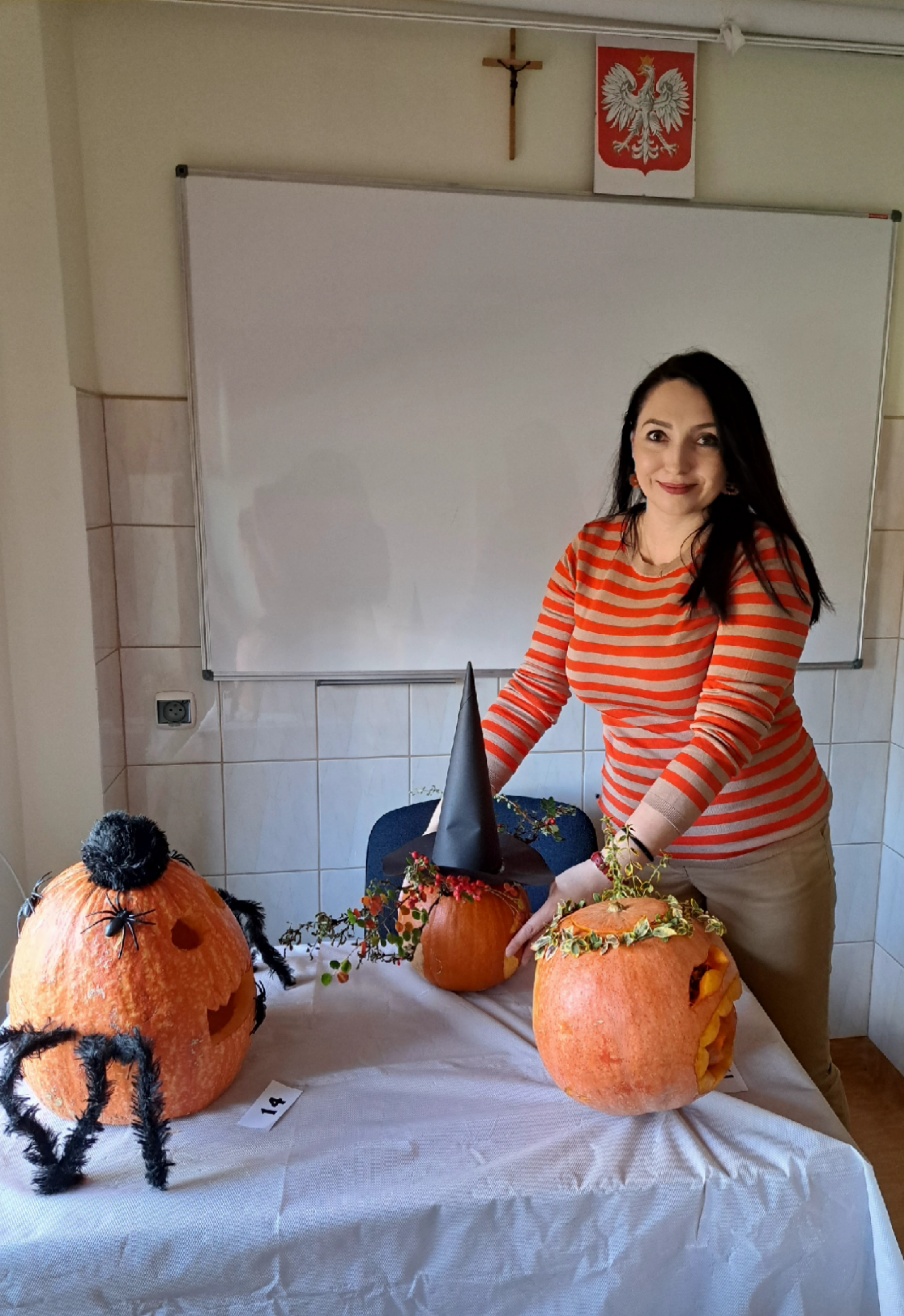 Uczniowie klas 1H, 2L oraz 3L wzięli udział w konkursie na kreatywne wykrawanie dyni. Rywalizacja była bardzo zacięta. Ostatecznie głosami uczniów oraz nauczycieli naszej szkoły na 1 miejscu uplasowała się dynia wykonana przez Jagodę i Martynę z 3L, 2 miejsce przypadło dyni przygotowanej przez Izabelę i Darię z klasy 2L, a 3 miejsce zajęła dynia Izabeli z klasy 1H. Gratulacje!!!