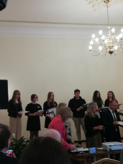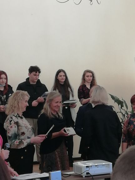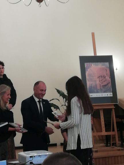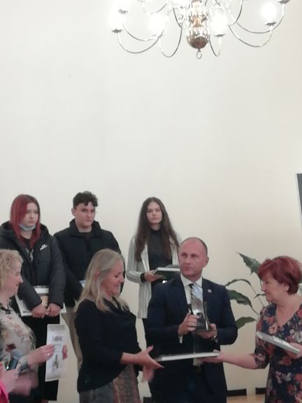 Za nami finał XIX edycji Regionalnego Konkursu Recytatorskiego i Poetyckiego im. Jerzego Hordyńskiego ! W tym roku Naszą szkołę reprezentowały uczennice : Zofia Duszko (kl.1B), Wiktoria Wańkowicz (kl.2B) w kat. recytacja oraz Natalia Stachurska (kl.2D) w kat. poezja śpiewana. Uczestnicy tegorocznej edycji konkursu recytowali wiersze Jerzego Hordyńskiego i przemyskiej poetki – Teresy Paryny. W piątek, tj. 22 października br. w Sali Lustrzanej odbyło się uroczyste podsumowanie i wręczenie nagród. Nasze dziewczęta, jak co roku, spisały się na medal ! Zosia zajęła II miejsce w kat. recytacja, a Natalka otrzymała I nagrodę w kat. poezja śpiewana.