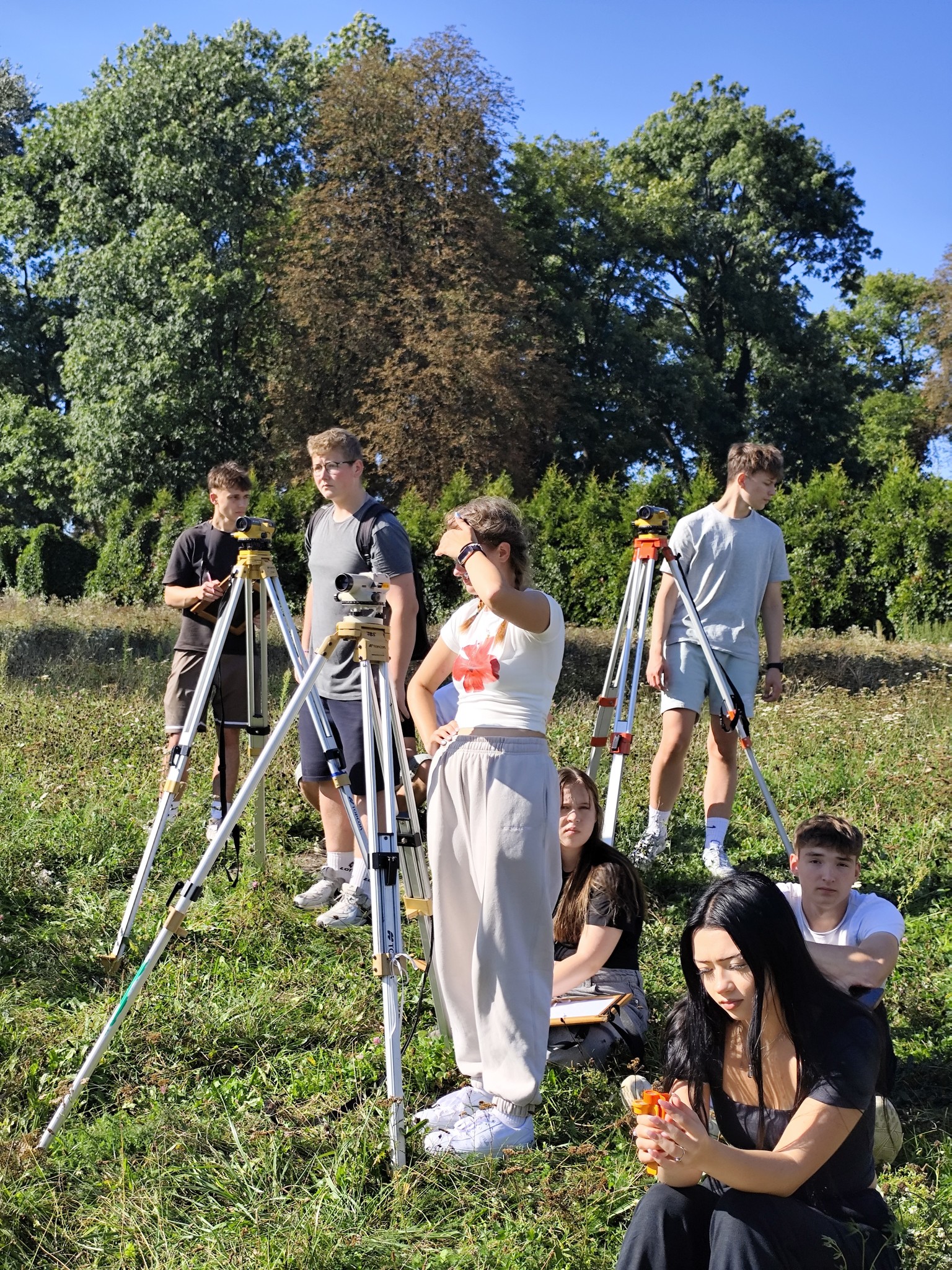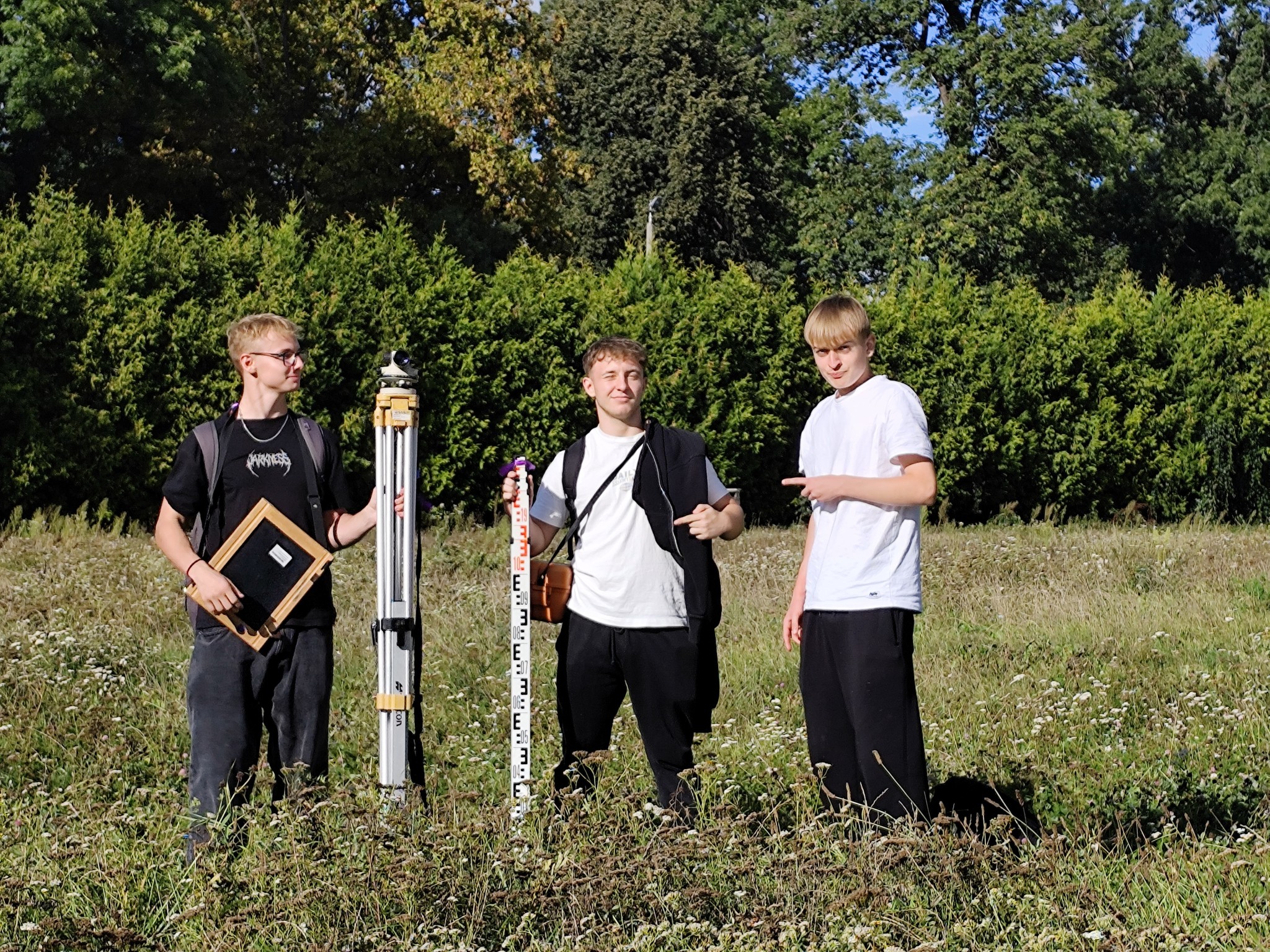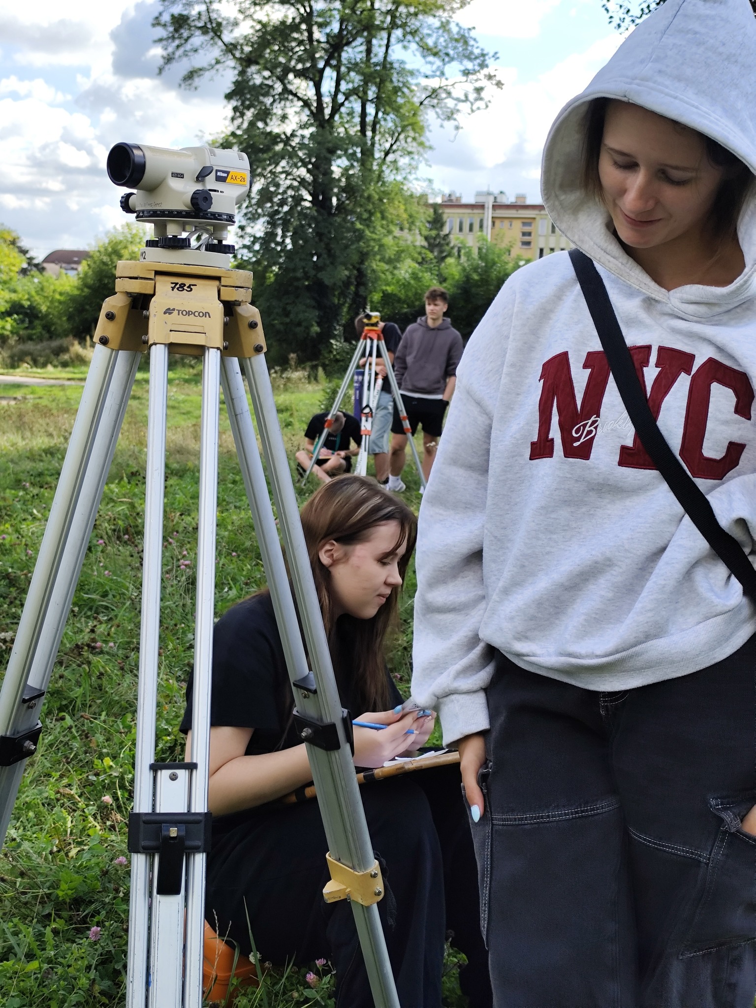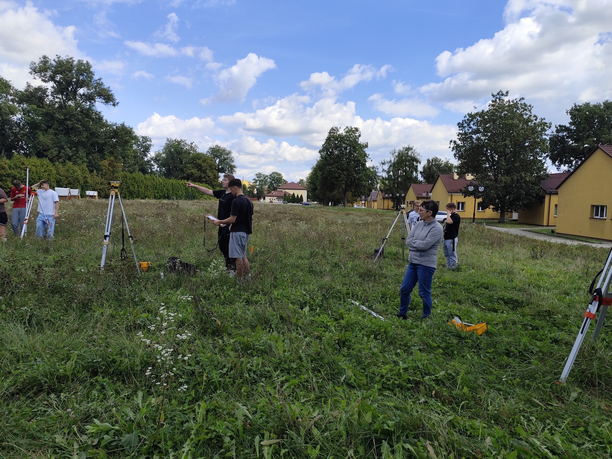 Korzystając z ładnej pogody, uczniowie klasy 3 geodezyjnej realizują swoją jesienną część ćwiczeń geodezyjnych. Przez dwa tygodnie pod kierunkiem swoich nauczycieli wykonują typowe zadania geodezyjne, które są powiązaniem poznanej teorii z praktyką, a tym samym stanowią dopełnienie procesu nauczania. Choć nie zawsze aura jest taka przyjazna i nie zawsze wyniki prawidłowe, nie poddają się…