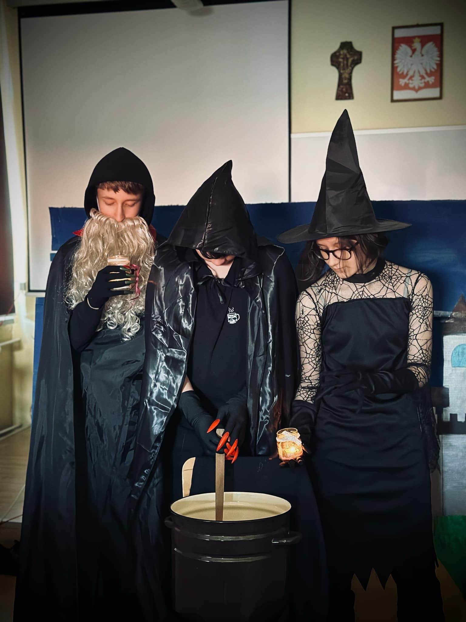 Uczniowie „Witkowskiego” po raz kolejny udowodnili swój talent artystyczny, biorąc na warsztat sztukę „Makbet” W. Szekspira. Swoją inscenizacją wykazali, że życie jest zaplanowanym przedstawieniem… Brawa dla Zosi (kl.2P), Dominiki, Oliwiera, Staszka, Kamila, Mikołaja i Filipa (kl.2M)! Honorowym widzem była Pani Dyrektor Renata Tomaka-Pasternak.
